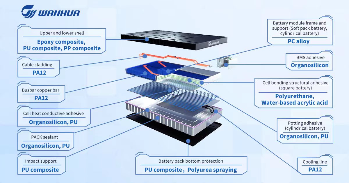 As power batteries play a crucial role in the development of new energy vehicles, Wanhua Chemical has brought a complete material solution for battery packs to the industry through innovative upgrades in polyurethane, modified plastics, composite materials, organic silicon, and other materials.