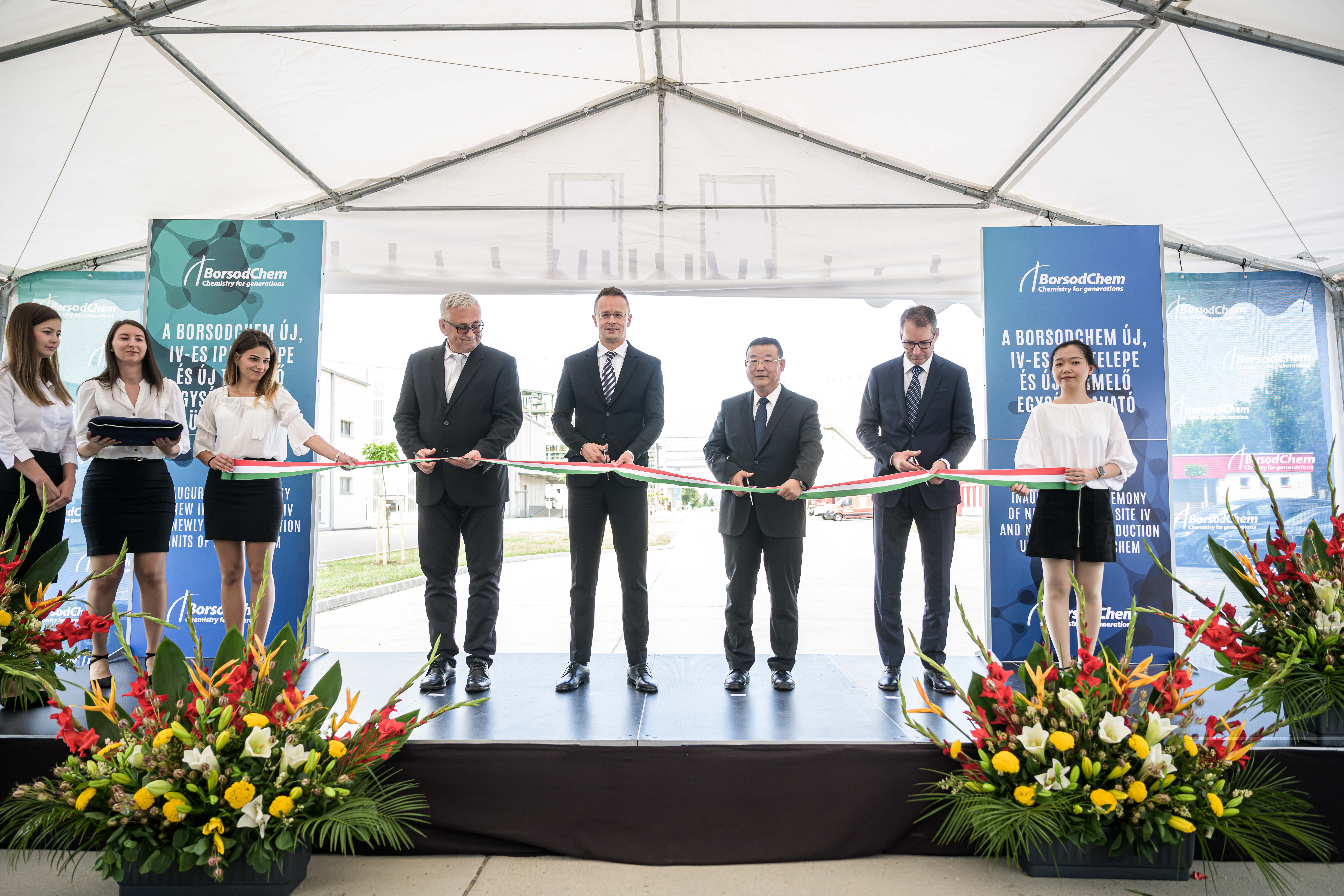 On June 30th, BorsodChem's Site IV and new production units were officially handed over. The inauguration ceremony was attended by Mr. Szijjártó Péter, Minister of Foreign Affairs and Trade of Hungary, Mr. Joó István, CEO of the Hungarian Investment Promotion Agency, Mr. Demeter Zoltán, Parliamentary Representative, Ms. Wu Dan, representative of the Chinese Embassy in Hungary, as well as local mayors, government officials, community representatives, and partners.